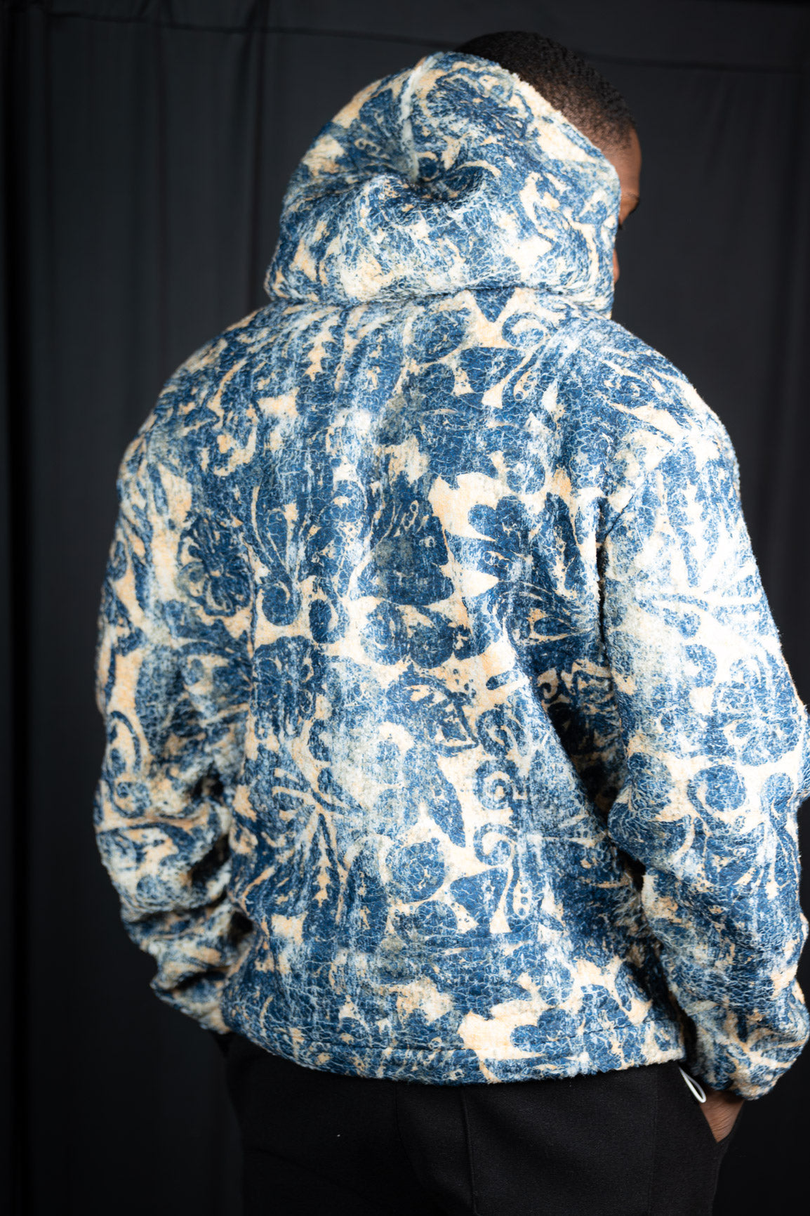 Une pièce à la matière texturée et au motif graphique affirmé, pensée pour donner du caractère à une silhouette contemporaine.